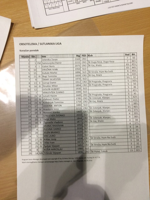 Rezultati II dio – završnica: